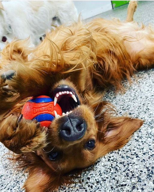 We understand that leaving your pup at daycare can be stressful! We promise, your pups paws are in good hands. A regular daycare day consists of time in our play room, personal work with your dog in our activity room, multiple walks and some rest time! Under the attentive eye of our highly-trained canine care specialists, your pup will have fun socializing and exercising throughout the day. Their day will be structured to fit their preferences and quirks in a clean and safe environment.